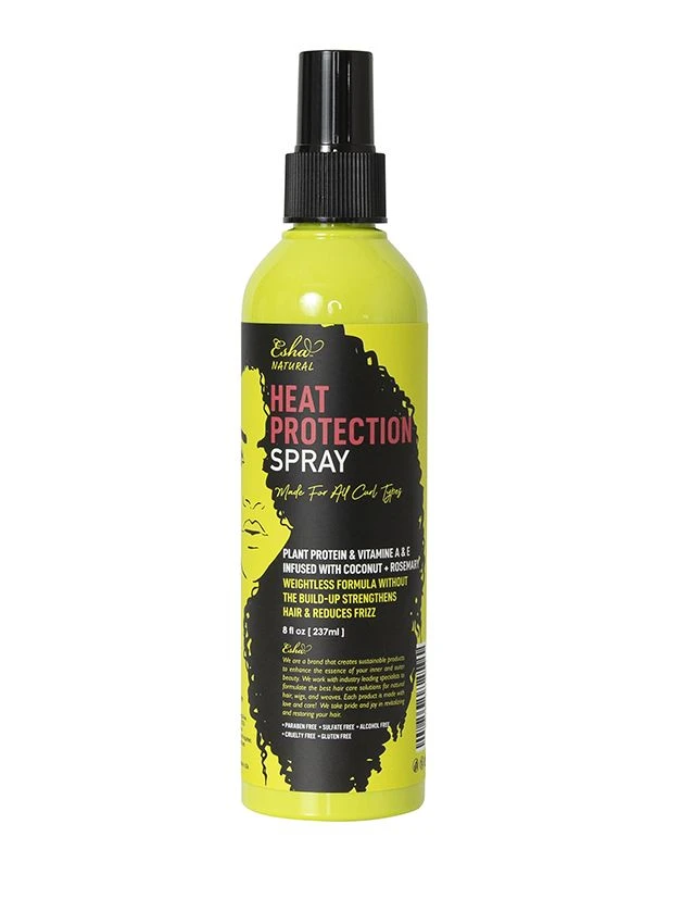 Esha Natural Heat Protection Spray is the perfect solution for protecting your curls from heat damage caused by styling tools. Infused with a blend of plant proteins and biotin B complex to promote hair growth while strengthening your locks from inside and out. Say goodbye to heat damage and hello to healthy, nourished, and defined curls.
