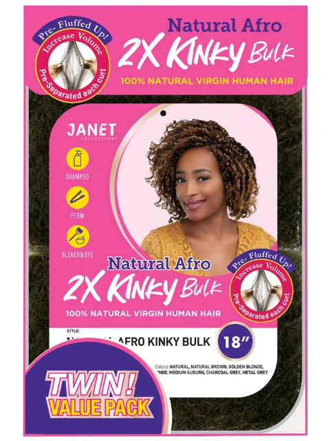 Janet Collection 100% Human Hair 2X NATURAL AFRO KINKY Bulk (TWIN)