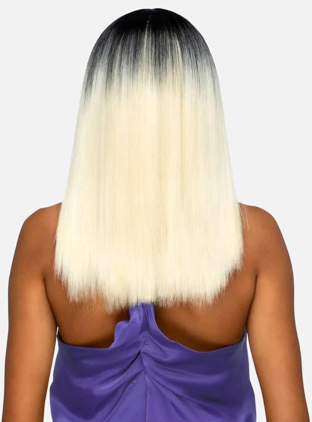 - 18″layered frindged end long bob with invisible center part.