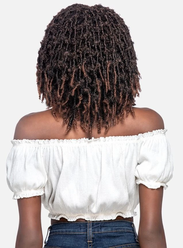 - Layered butterfly locs bob style.